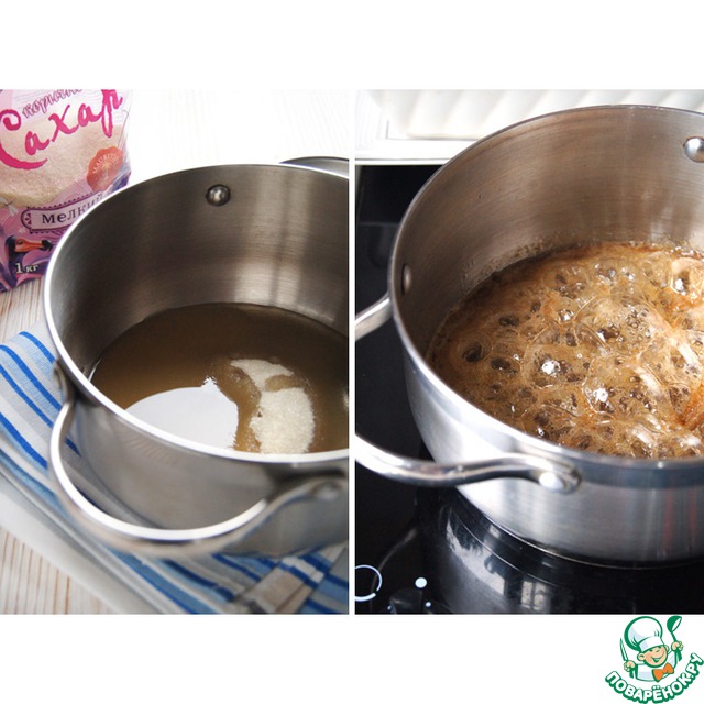 Во избежание кристаллизации сахара по краям стенки кастрюли протирают кисточкой, смоченной в горячей воде.