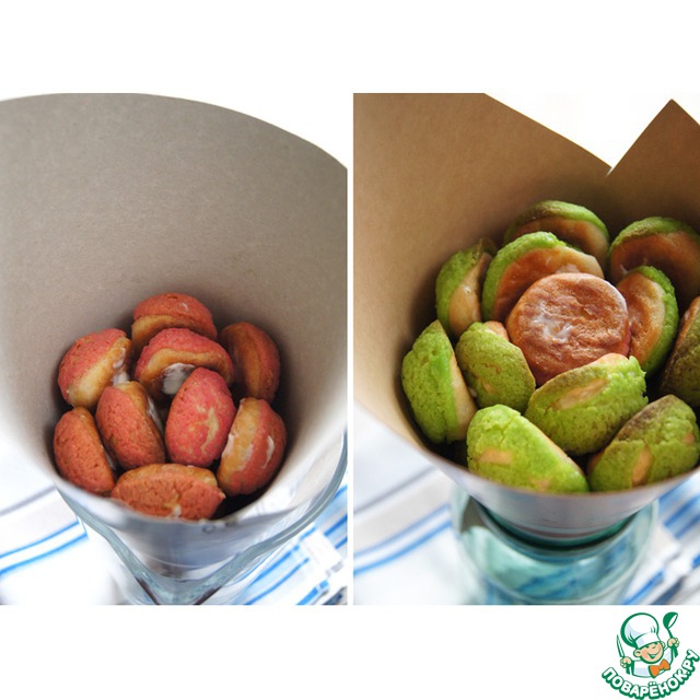 Имеется несколько способов сборки. Можно собрать десерт на специальный конус с одноимённым названием. Можно выложить конус, начиная от широкого основания, постепенно сужая его. А можно воспользоваться конусом, свёрнутым из подручного материала (плотного картона или пластика). Я продемонстрирую последний вариант.