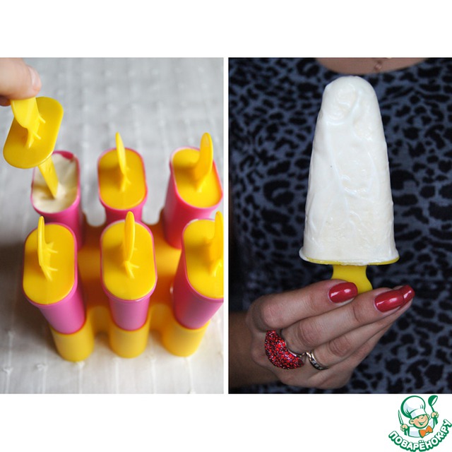 А ещё у меня остался крем. Разлив его по формочкам я через час угощала гостей вкусным домашним мороженым.