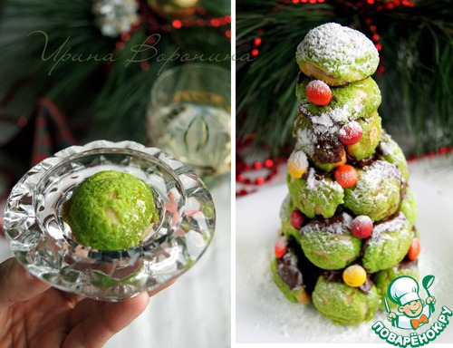 С цвета и начнём. Один Крокембуш я выполнила в зелёном цвете, что в сочетании с формой конуса позволяет расширить рамки использования десерта и украсить этим символом ёлки новогодний стол. Второй - розовый.