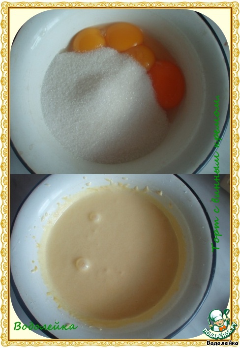 Теперь приступаем к крему. Желтки хорошо растереть с сахаром (я взбивала их в блендере). Сахара, при желании, можно добавить больше, если любите более сладкое. Добавить к ним вино, сок лимона и апельсина (выдавить).