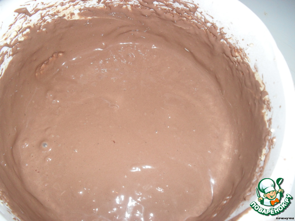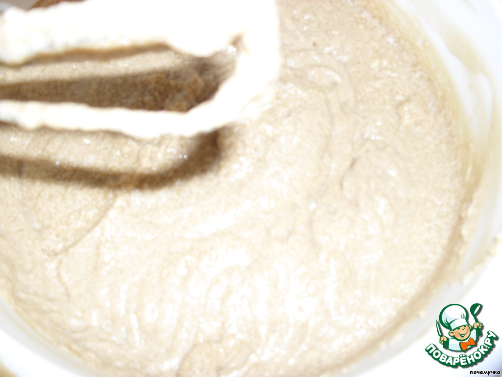 Яйца я растерла с сахаром. Добавила сметану и муку, соду и какао.