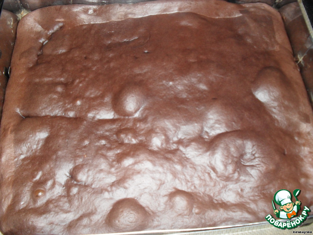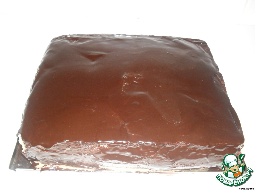 Готовый торт можно смазать кремом, а можно, как я, залить ганашем. Рецепт ганаша я писала тоже в рецепте торта "Опера": http://www.povarenok.ru/recipes/show/39834/