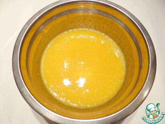 Соединяю желатиновую и персиковую массы, хорошо перемешиваю.