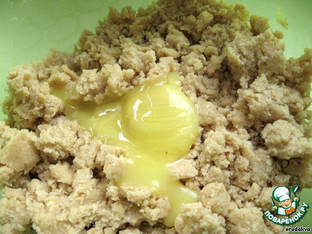Раскатайте тесто толщиной 5-7 мм. Вырежьте круг нужного вам диаметра. Перенесите тесто на противень, застеленный пергаментной бумагой, и уберите на час в холодильник.