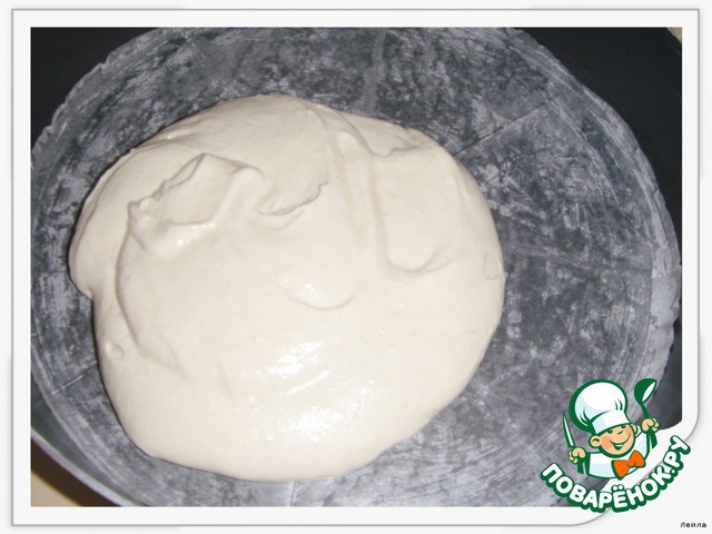 добавить просеянную муку, перемешать.