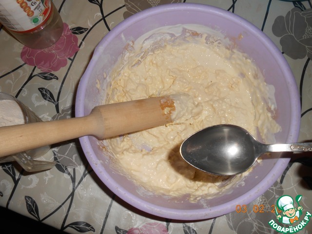 Постепенно подсыпаем муку и ванилин. Муки надо 2-3 стакана (сколько возьмет)