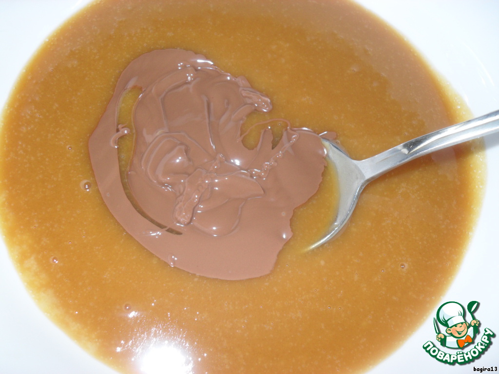 Растопить 200 г молочного шоколада и добавить в карамель.
