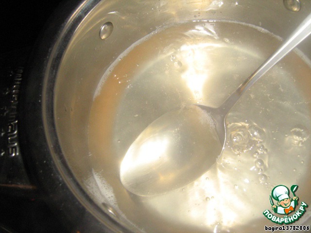 Пока выпкекается торт, увариваем сироп от груш на огне немного выше среднего.