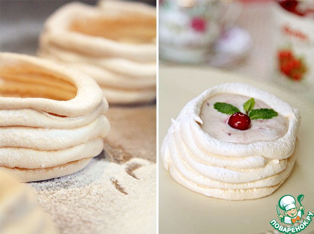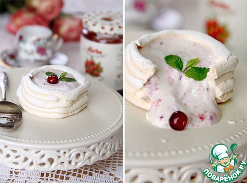 | Павлова - это десерт на основе безе, особенно популярный в Новой Зеландии и Австралии. Назван в честь балерины Анны Матвеевны Павловой, гастролировавшей в этих странах в 1926 году. Подаваться десерт может в виде торта или порционно, чаще всего со взбитыми сливками и фруктами. Сегодня предлагаю Вам порционные корзиночки с нежным наполнителем на основе творога и клюквенного соуса D’arbo. |