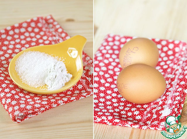 Итак, перед началом приготовления смешаем крахмал с 1/2 ст. л. сахара, отставим в сторону и достанем яйца.
