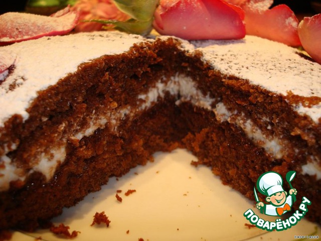 накрыть вторым коржиком и можно сразу же лакомиться, т.к.коржи очень мягкие и нежные