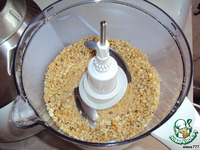 Орехи и крекер размолоть в измельчителе или кофемолке. Орешки можно взять любые, на ваш вкус.