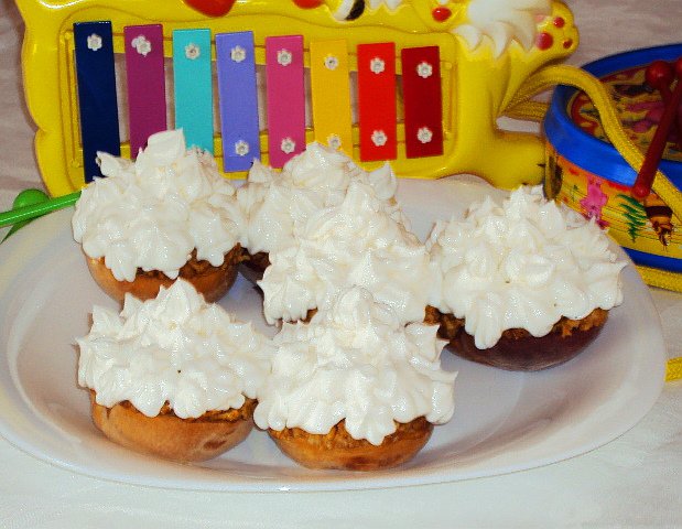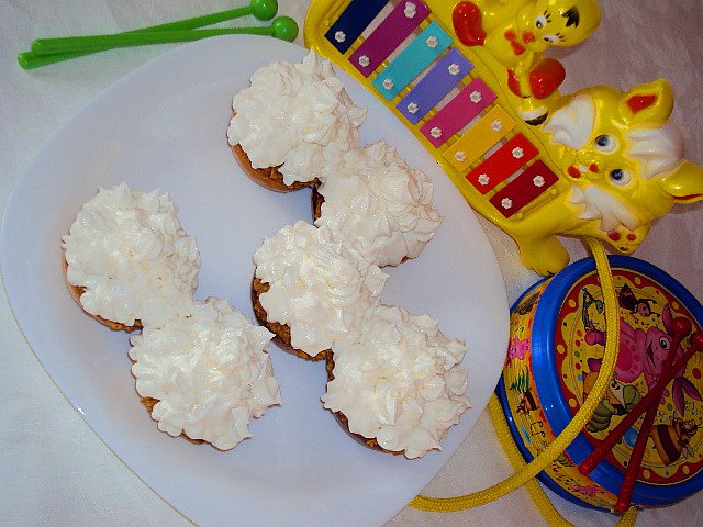 | Белые кораблики, белые кораблики по небу плывут. Белые кораблики, белые кораблики дождики везут. Пристани корабликам, пристани корабликам в небе не нужны, Пристают кораблики, пристают кораблики к маковке сосны. Все плывут кораблики, все плывут кораблики к нам издалека. Белые кораблики, белые кораблики - это облака... Моя маленькая дочка Виктория очень любит эту песенку «Белые кораблики» и часто просит меня еe спеть. Так вот эта песенка навеяла на меня одну задумку и я приготовила этот чудесный десерт в виде белых облачков-корабликов. Готовится легко и быстро, а получается - объеденье! На конкурс "Кулинарная гамма вкусов" |