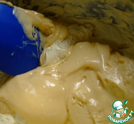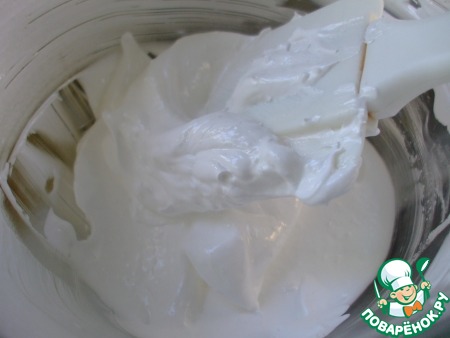 Чтобы сделать масляный крем менее масляным )) и более легким вводим в него в три приема нашу итальянскую меренгу. Аккуратно ЛОПАТОЧКОЙ перемешиваем до однородности.