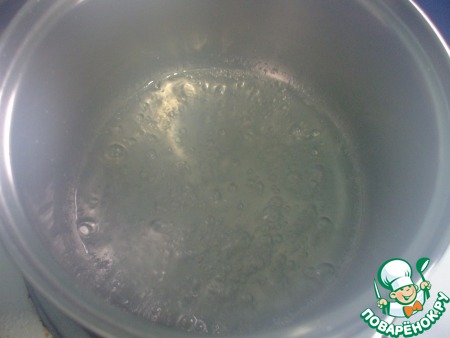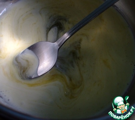 Пока взбивается тесто, ставим на огонь заранее приготовленную кастрюльку с 20 гр сливочного масла. Топим.