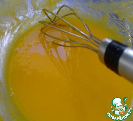 Смешать 30 гр желтков с 50 гр сахара. Добавить 15 гр сливок, 20 гр лимонного сока и 10 гр сока лайма. Перемешать.