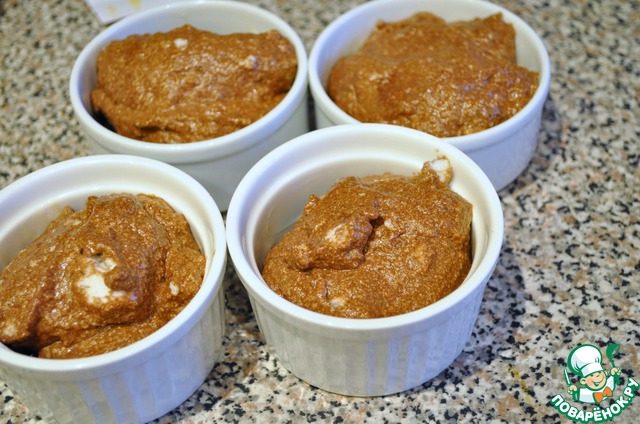 Формочки смазать маслом и присыпасть сахарной пудрой. Разложить равномерно чернослив. Потребуется примерно 9 рамекинов.