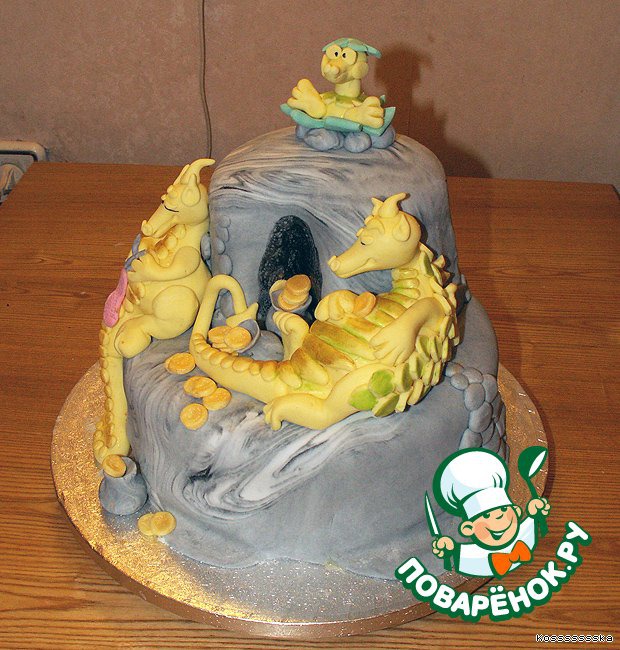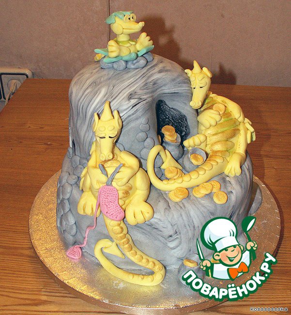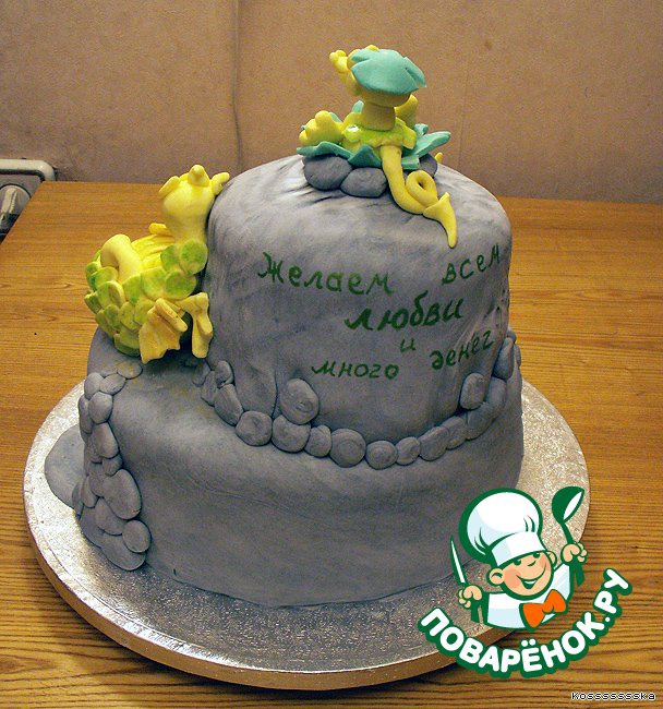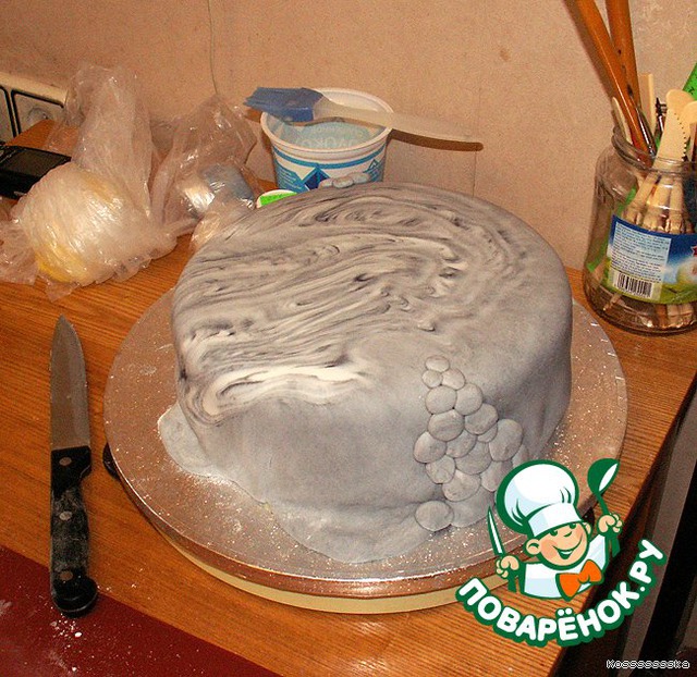Раскатываем мраморную пасту, накрываем наше основание. Украшаем "камушками"
