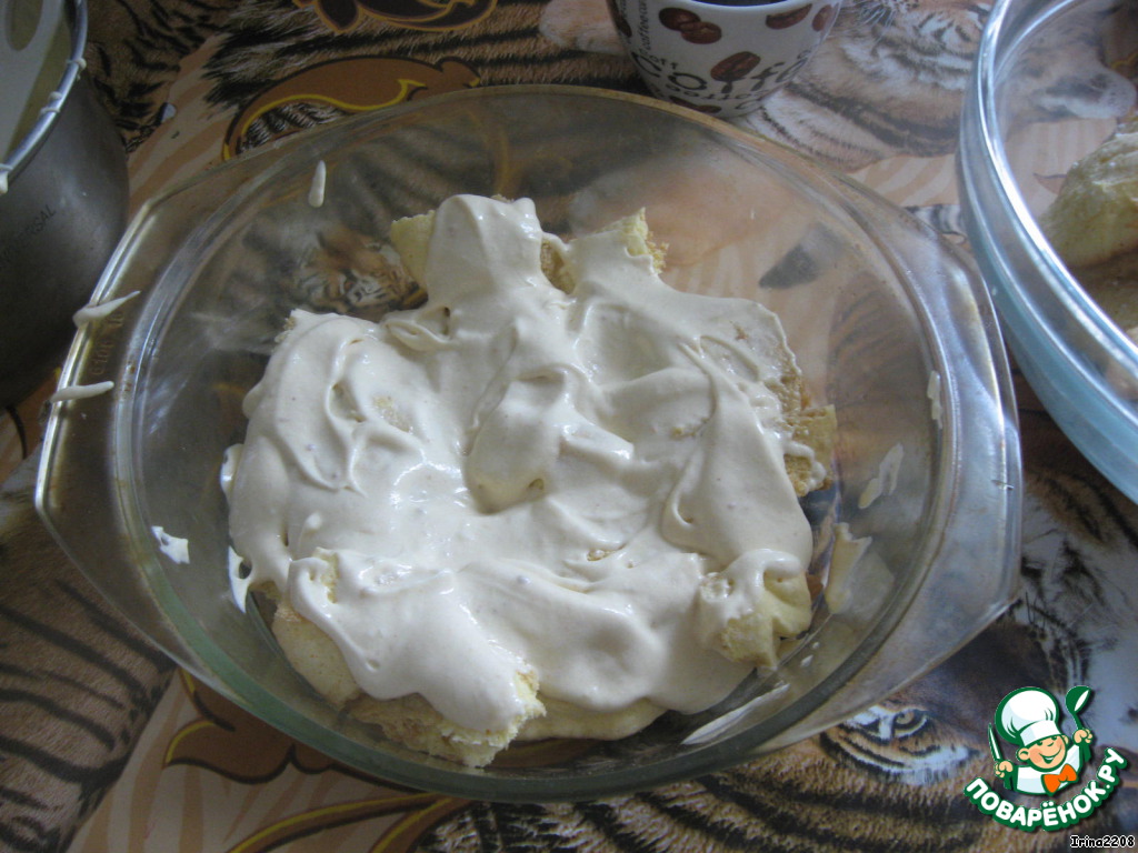 Затем следующий слой печенья (ну, тут и так ясно) - тоже пропитать кофе.
