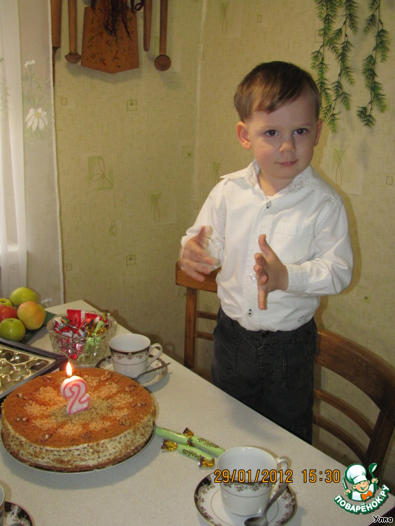 | Очень нежный торт по мамину рецепту. Что крем - это манная каша - догадаться практически невозможно. От мужа я это скрываю, так как манку он терпеть не может, а вот торт - с удовольствием)) |