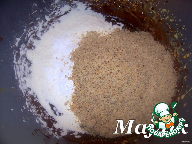 Всыпать муку, разрыхлитель и молотые ореxи.