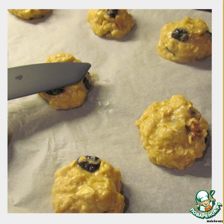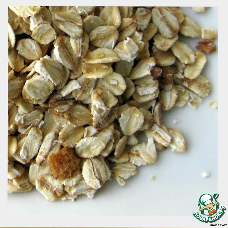 Добавим овсяные хлопья (обычные, не для быстрого приготовления). Их, предварительно лучше просушить в духовке или на сковороде.