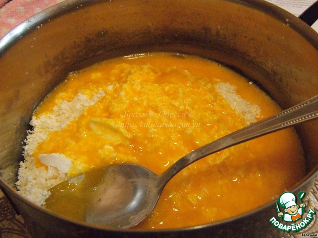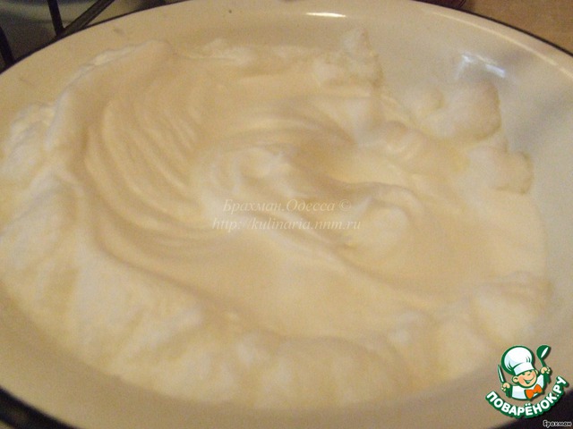Аккуратно ввести белки и крахмал. Перемешиваем осторожно.
