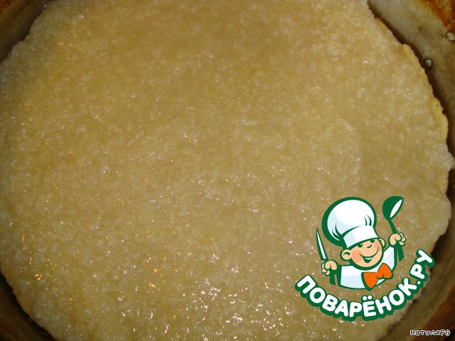 Готовую основу достаем, немного охлаждаем, выкладываем кокосовый крем.