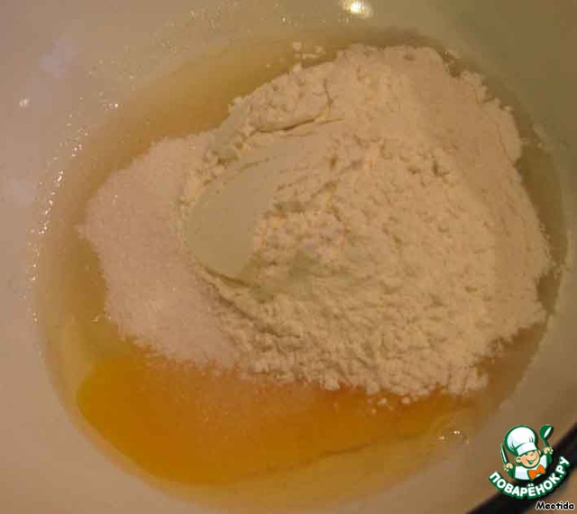 вилочкой или венчиком смешиваем сахар, яйцо, муку и ванилин