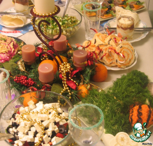 | новогодний стол - это настоящий искрящийся фонтан.. пьянящие искры шампанского... блеск бенгальских огней.. искрящееся пламя свечей.. свет любимых глаз.. мерцание звезд в окне и гирлянды на елке.. и в плену всех этих искр исполняются любые самые заветные желания сочность ананасов.. нежный заварной творожный крем... оранжевая прелесть апельсинового желе... роскошь шоколадно-кофейного крема.. и легкие серебристые искры конфеток.. на конкурс: "Gorenje: новогодняя композиция" |