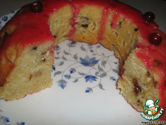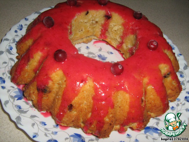 Теперь готовим глазурь: тщательно растираем сахарную пудру с клюквенным соком.