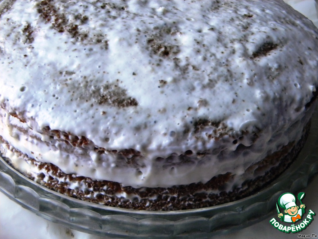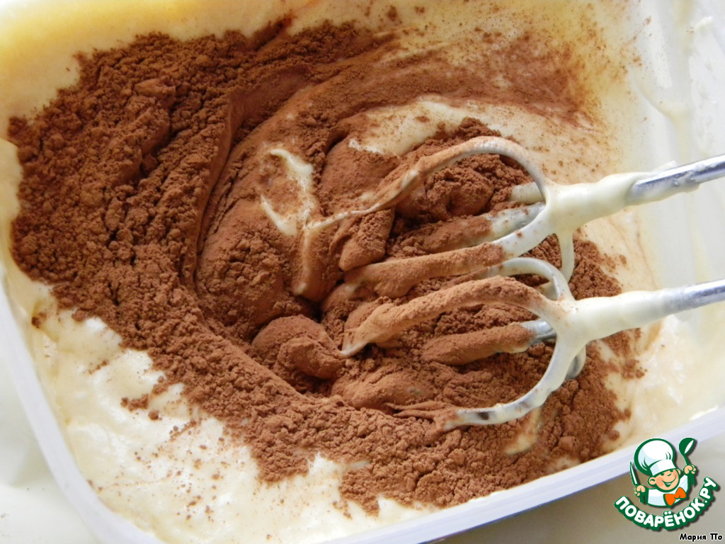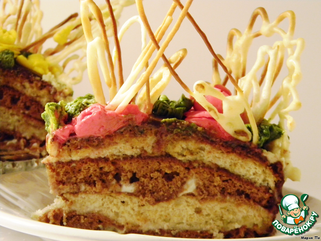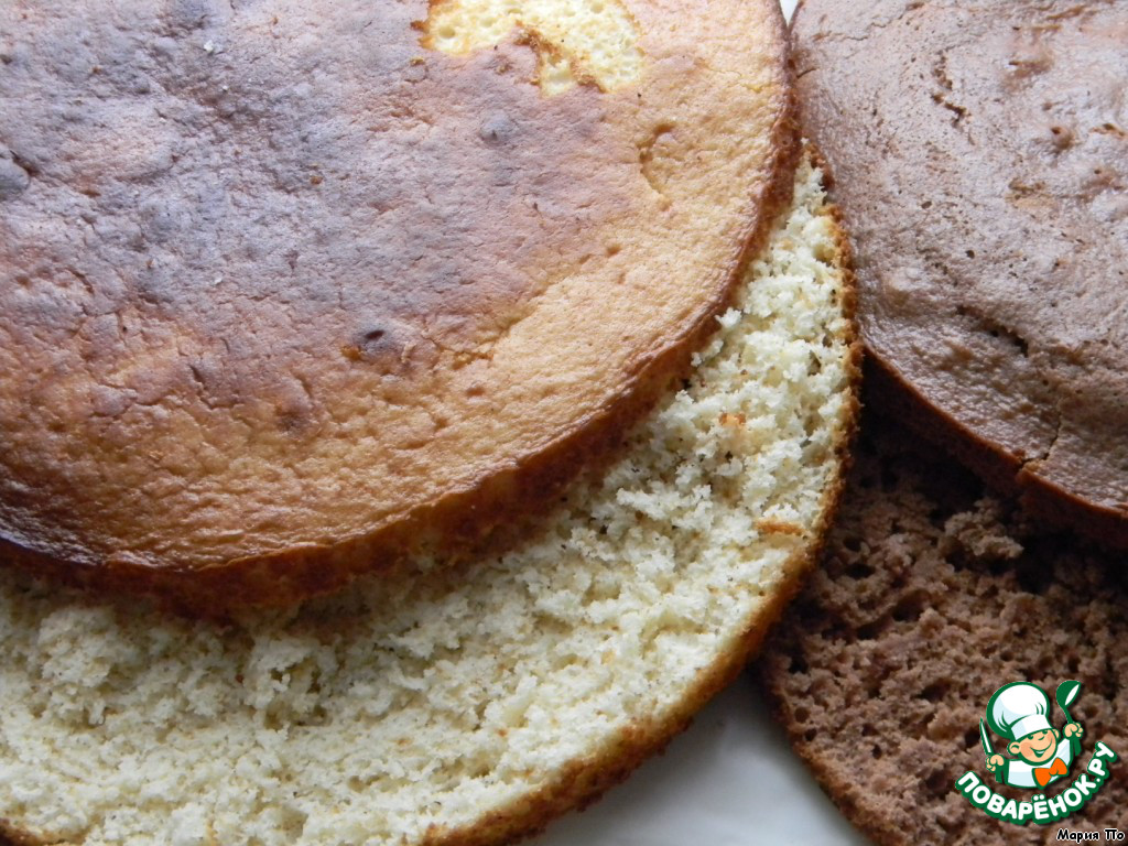 Выпечь два коржа - белый и "шоколадный", при температуре 180-200С, 20-25 мин.