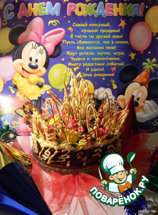 | Поварeнок стал моим любимым кулинарным сайтом недавно, но уже успел привязать к себе. Мы с Поварeнком теперь неразлучные друзья. На каждый праздник, семейное торжество он для меня «путеводитель» в мире салатов, закусок и тортов. Благодаря ему и замечательным кулинарам на нашем столе всегда что-то новое и вкусное. С Поварeнком заочно знакомы все родственники и многие друзья. Благодаря новым рецептам, взятых с сайта, у всех моих гостей возникает желание что-то поменять на своeм, уже обыденном, праздничном столе. Всe чаще мне стали звонить и просить скинуть ссылку или просто подсказать. Поварeнок дал и продолжает давать мне очень много знаний, он воодушевляет на новые открытия и эксперименты. Общение с разными людьми позволяет узнавать многие хитрости и самые заветные секреты в кулинарии и не только. Я не могла пропустить такое важное событие: «Трeхлетие любимого сайта». Хочу поздравить и отблагодарить всех, кто делает сайт доступным, ярким, домашним. Уважаемая администрация, дорогие поварята, дарю Вам свой «Воздушный поцелуй», нежный торт. Очень вкусные коржи на сгущенном молоке, пропитанные сметанным кремом, покрытые густой глазурью, понравятся Вам, без сомнений. Ещe хочу показать, как можно сделать украшения из заварного теста, которые сделают торт объемным. Думаю, такая подача удивит Ваших гостей! |
