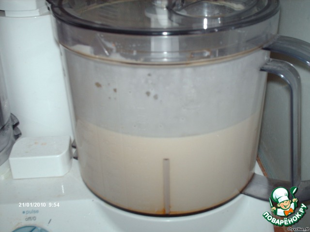 Добавить жидкий мед и еще раз хорошо взбить, чтобы мед полностью разошелся.