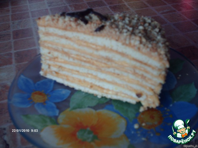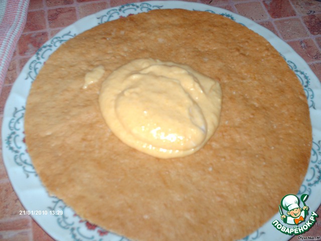 Тортик получается с ярко выраженным вкусом кураги. Единственное, вкус медового теста заглушается кремом.