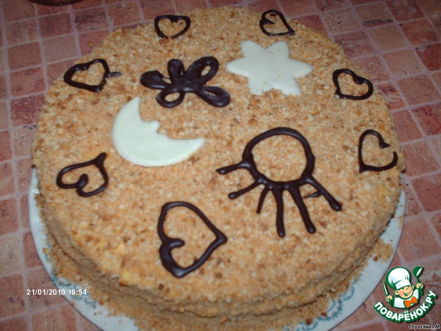 Собрать торт и поставить в холодильник, как минимум, на ночь, а лучше на сутки, чтобы коржи хорошо пропитались.