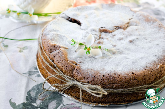 Готовый торт остудить, затем достать из формы, посыпать сахарной пудрой и подавать к столу.