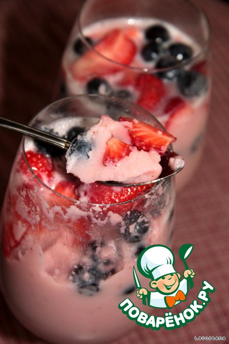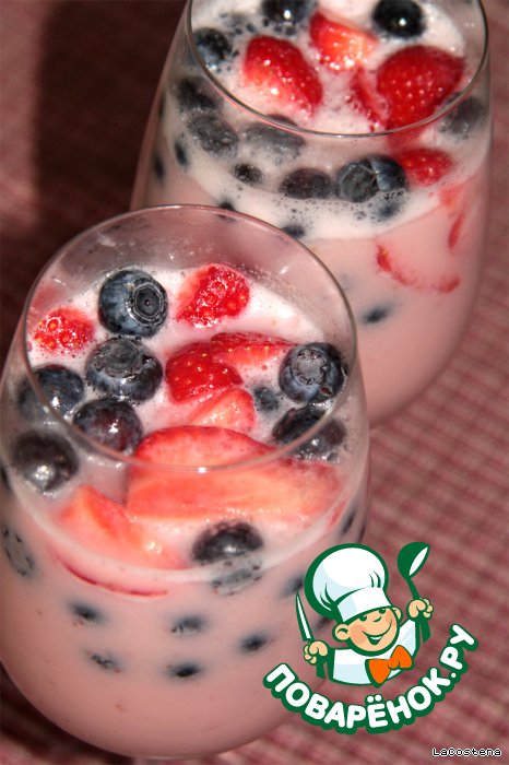 | Таким легким десертом хорошо лакомиться, когда за окно ярко светит солнце. Вкус - тонкий, структура - нежная, ягоды - свежие! Время приготовления - 30 минут! |