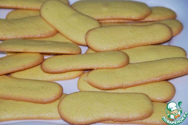 Но наиболее выигрышно десерт смотрится с палочками савоярди. Их можно купить или испечь самим, как сделала это я. Вы найдёте десяток рецептов этих палочек на сайте. На приготовление одной порции потребуется 6 палочек савоярди.