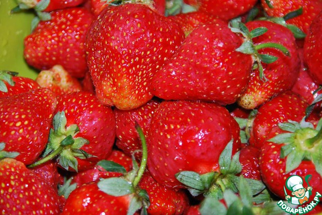 Берём клубнику, ягоды должны быть приблизительно одного размера, свежие, не мятые.