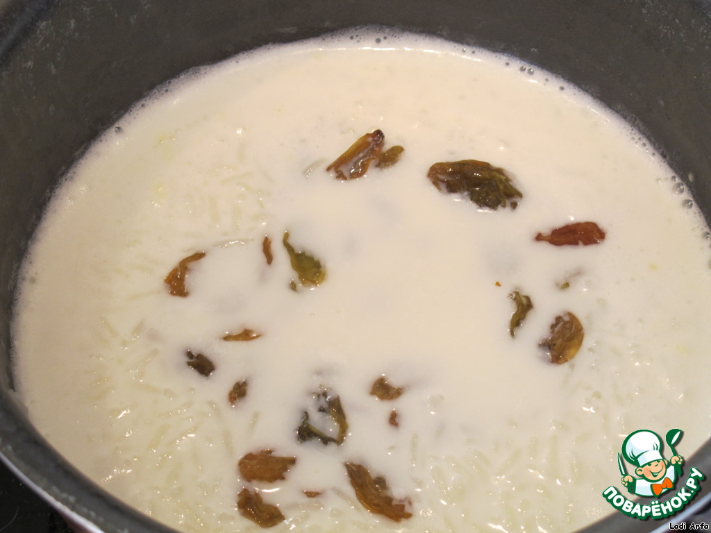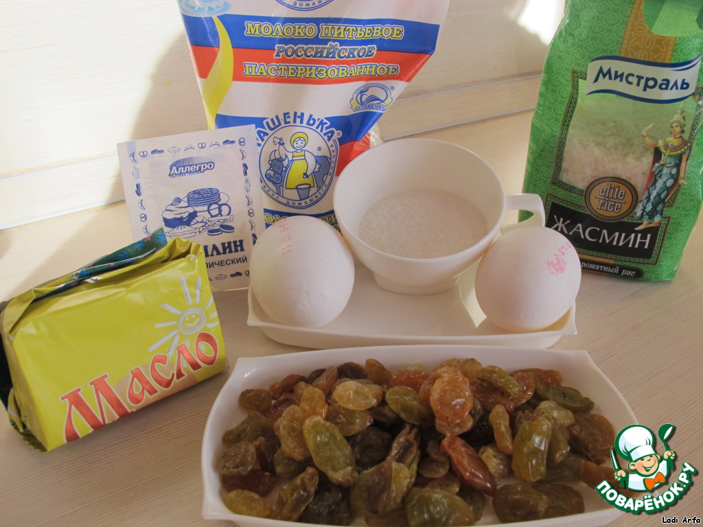 Изюм промыть и распарить кипятком, после чего перемешать с рисовой кашей, а также добавляем 40 г сливочного масла.