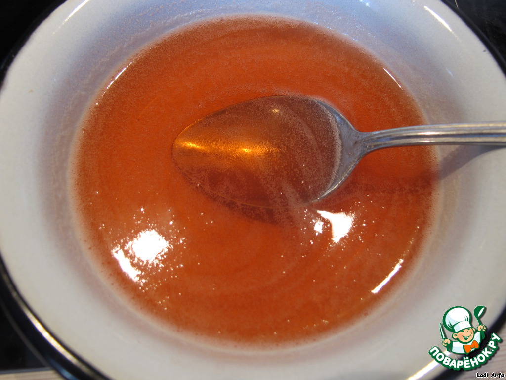 1 чайную ложку агар-агара залить 150 г сиропа, дать постоять минут 30, после чего вскипятить и дать немного остыть.