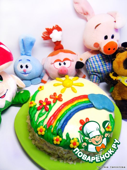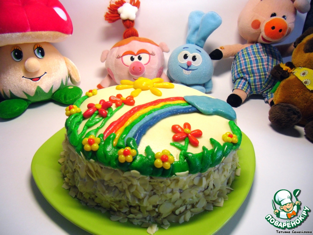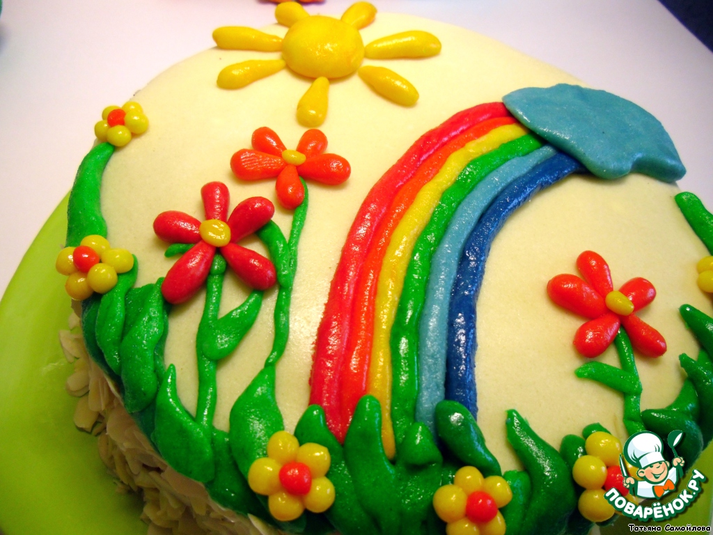 Верх торта по желанию украсить кулинарной мастикой: http://www.povarenok.ru/recipes/show/57017/