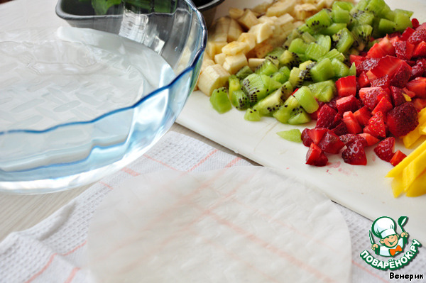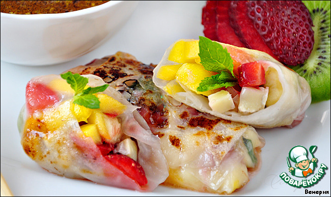 Фруктовые спринг-роллы с сыром «Бри» и медово-ванильным соусом