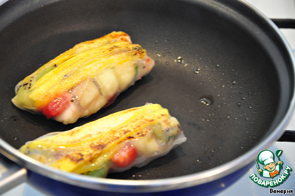 Растопить в сковороде кусочек сливочного масла и обжарить роллы с каждой стороны.