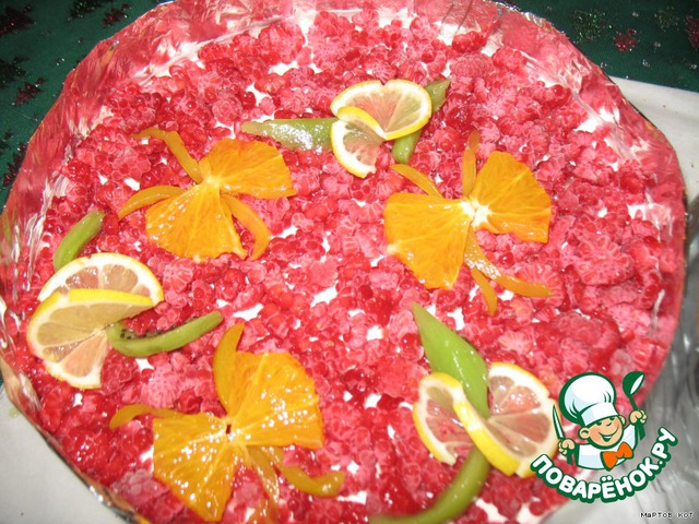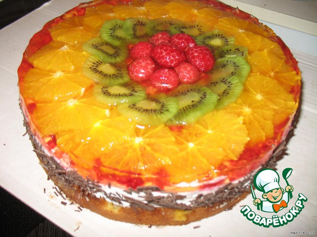 Затем полёт фантазии,выкладываем ягоды и фрукты,кисточкой наносим желе.