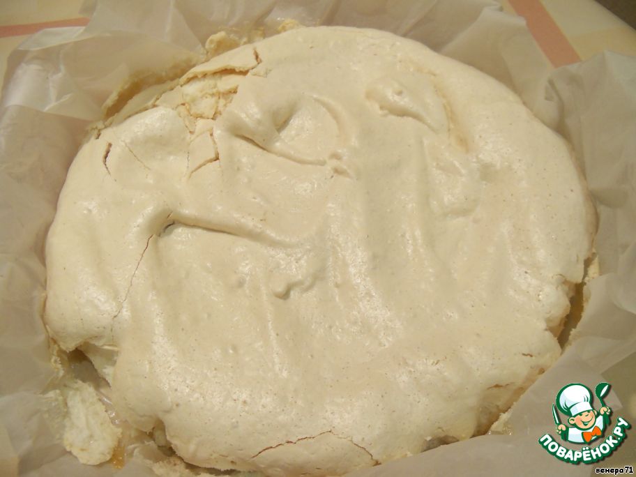 Корж безе: 5 белков миксером взбить в пену, постепенно добавляя