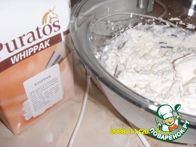 Взбиваем сливки, кладем какао и ванил.сахар=крем.