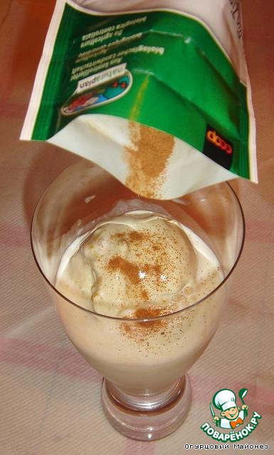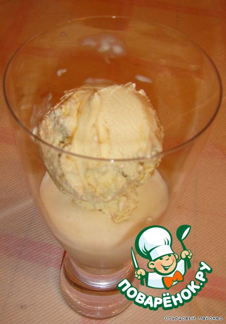 Растапливаем ванильное мороженое. Переливаем его в глубокий стакан и добавляем абсент.
